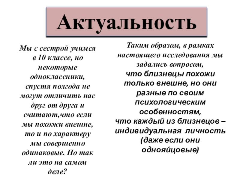 что близнецы похожи только внешне, но они разные по своим психологическим особенностям,