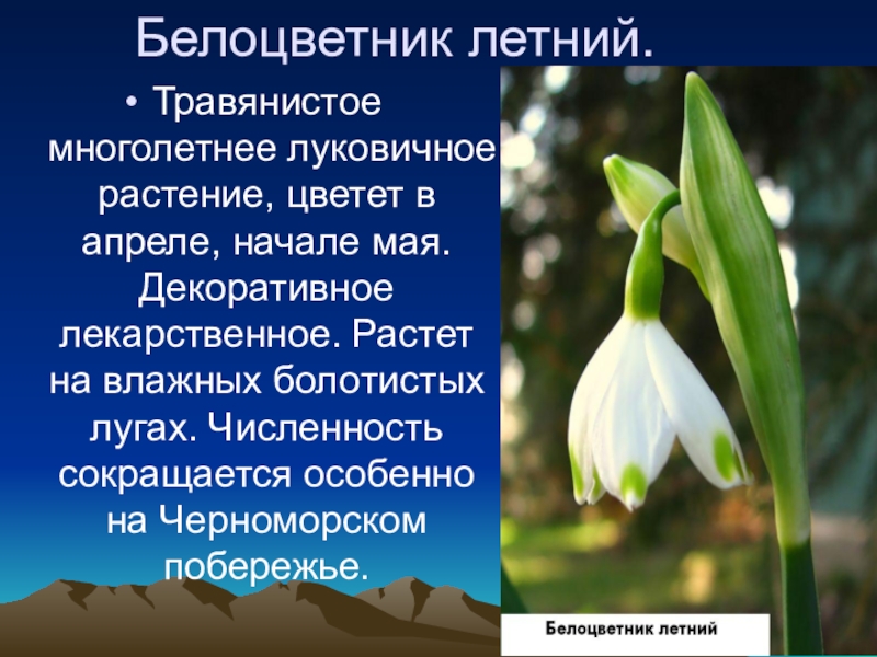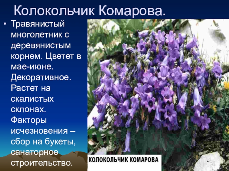 на скалистых склонах. Факторы исчезновения – сбор на букеты, санаторное строительство.