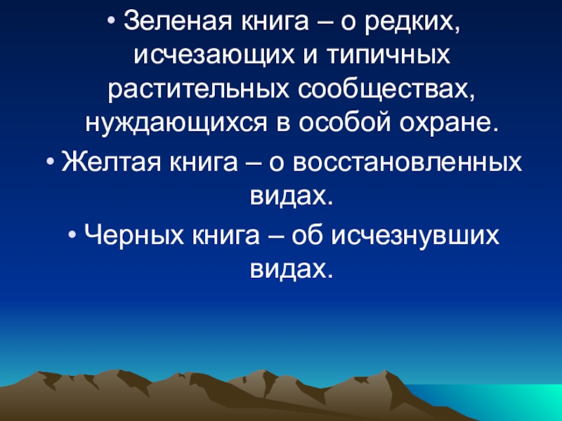Слайд 22Зеленая книга – о редких, исчезающих и типичных растительных сообществах, нуждающихся