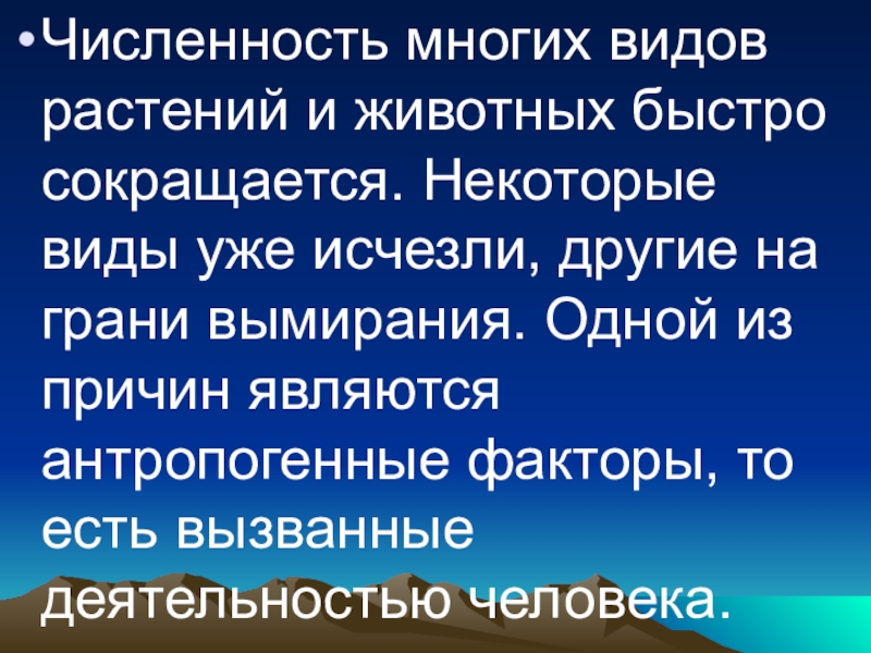 Слайд 3Численность многих видов растений и животных быстро сокращается. Некоторые виды уже
