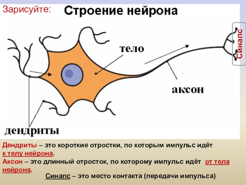 Аксон – это длинный отросток, по которому импульс идёт от тела