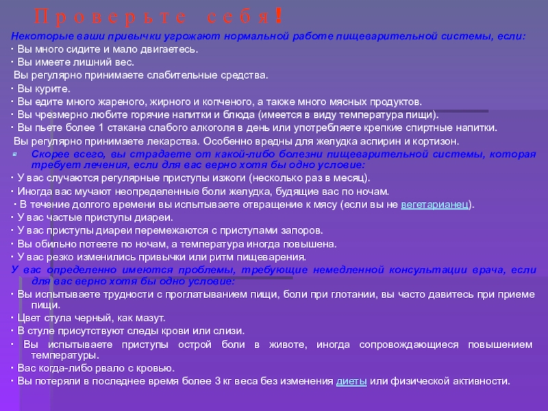 Некоторые ваши привычки угрожают нормальной работе пищеварительной системы, если: