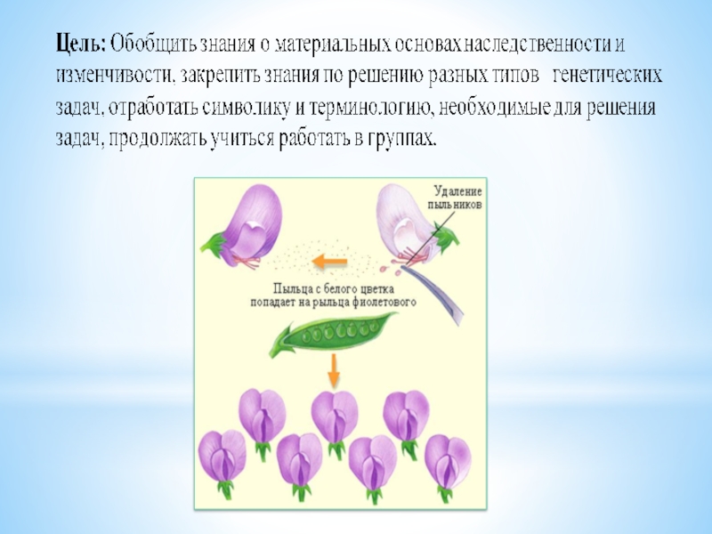 Задачи.• образовательная: обобщить ранее изученный материал по пройденной теме, определить степень усвоения категориального аппарата темы. Продолжить формирование умений и навыков по решению генетических задач, подготовку к ЕГЭ. развивающая: развивать умение сравнивать (на примере сравнения фенотипов и генотипов