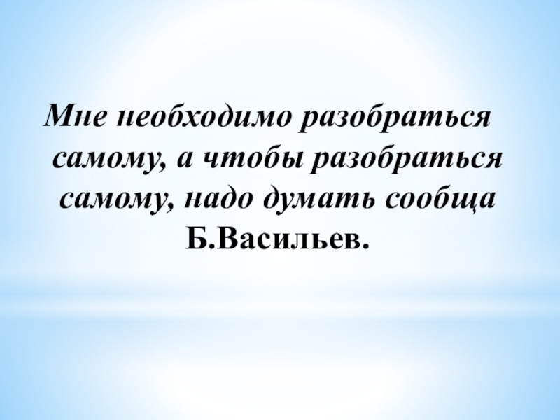 Слайд 4Мне необходимо разобраться самому, а чтобы разобраться самому, надо думать сообща Б.Васильев.