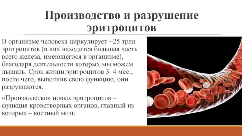них находится большая часть всего железа, имеющегося в организме), благодаря деятельности которых мы можем дышать. Срок жизни эритроцитов 3–4 мес., после чего, выполнив свою функцию, они разрушаются.