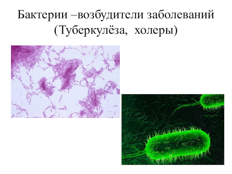 Слайд 10Бактерии –возбудители заболеваний (Туберкулёза, холеры)