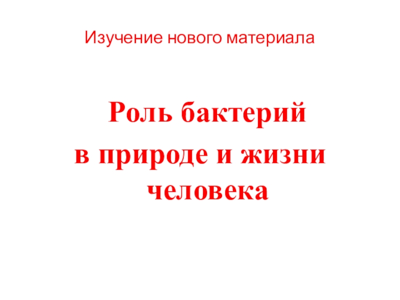 Изучение нового материала Роль бактерий в природе и жизни человека