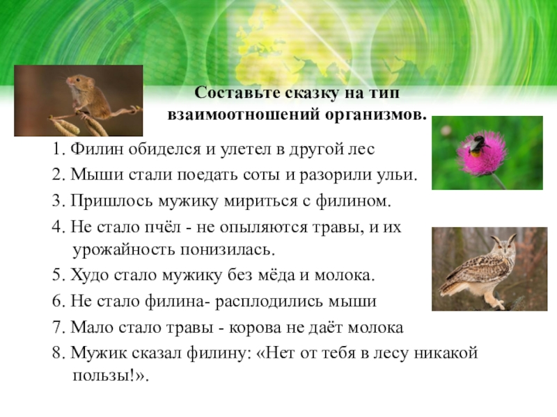 Слайд 3Составьте сказку на тип взаимоотношений организмов.