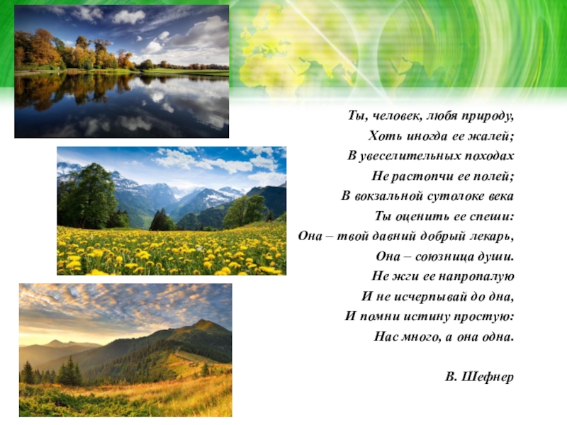 выяснили основные виды загрязнителей, как бороться с ними. Будем же беречь нашу Землю! Повсюду, на каждом шагу, все вместе и каждый в отдельности. Будем заботиться о земле, воде, животных, растениях, о том, что нас окружает.