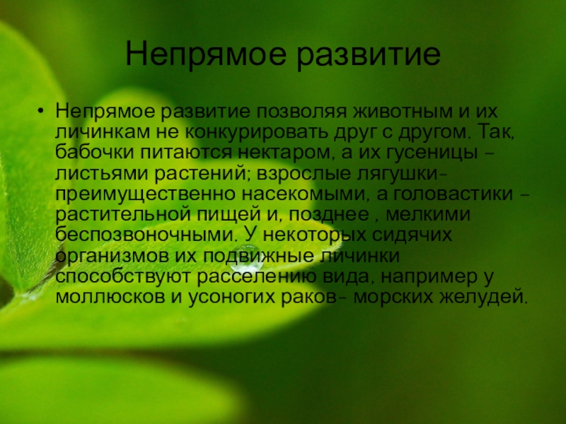 Непрямое развитие позволяя животным и их личинкам не конкурировать друг