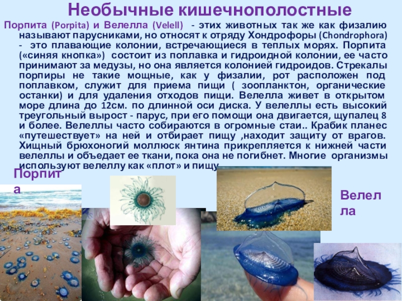 Порпита (Porpita) и Велелла (Velell) - этих животных так же