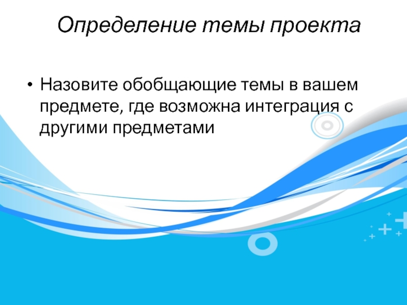 Определение темы проекта Назовите обобщающие темы в вашем предмете, где возможна интеграция с другими предметами