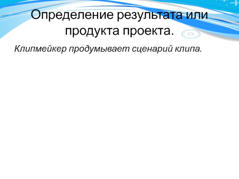 Определение результата или продукта проекта.Клипмейкер продумывает сценарий клипа.