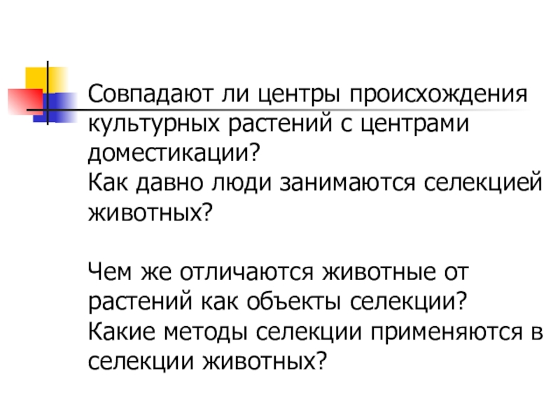 Совпадают ли центры происхождения культурных растений с центрами доместикации? Как давно люди занимаются селекцией  животных?