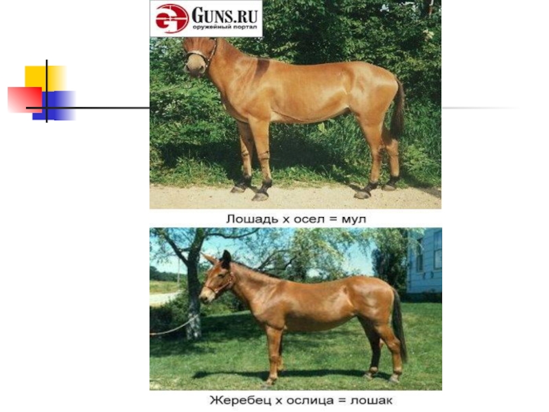Отдаленная гибридизация у животныхОсел + лошадь=мулОслица + конь = лошакЗубр + бизон = зубробизон1- горбый верблюд +