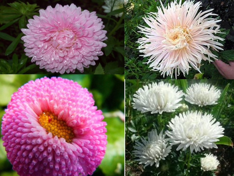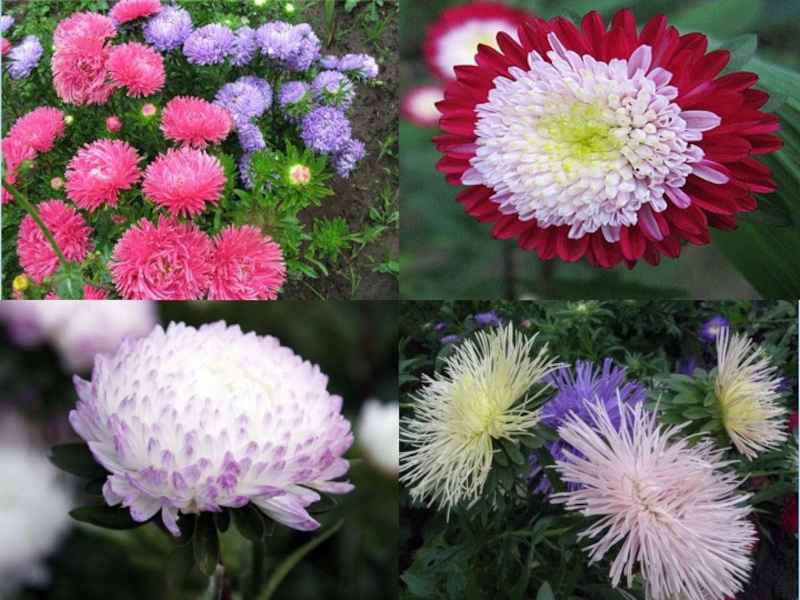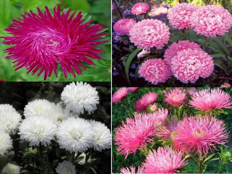 Некоторые сорта — с махровыми цветами, напоминающими хризантемы, чисто белого или красного и голубого цветов с разнообразнейшими оттенками.