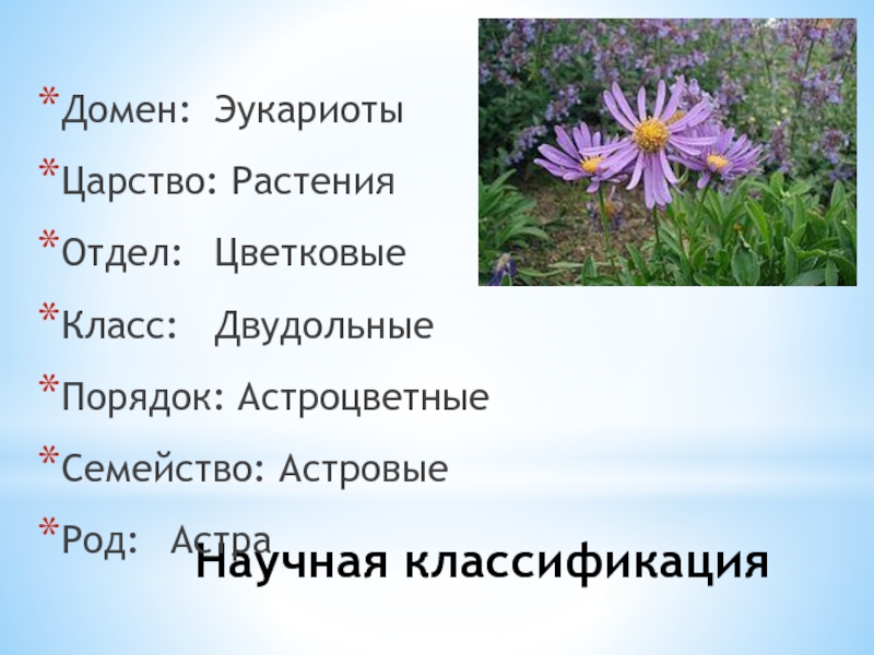 Астры — однолетние и многолетние корневищные травы с простыми листьями. соцветия — корзинки,