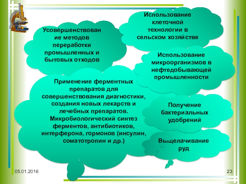 Получение органических кислот, использование ферментов в моющих средствах, создание клеев, волокон, желатинизирующих веществ, загустителей, ароматизаторов и др.