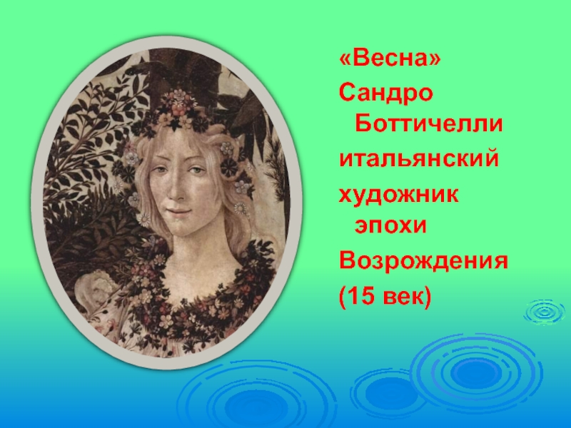 «Весна»Сандро Боттичеллиитальянский художник эпохиВозрождения(15 век)