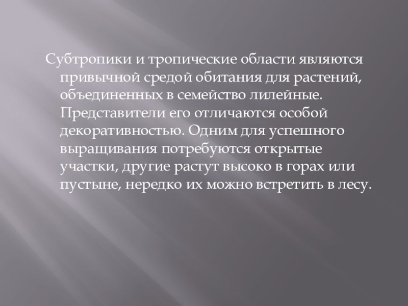 Слайд 3 Субтропики и тропические области являются привычной средой обитания для растений, объединенных