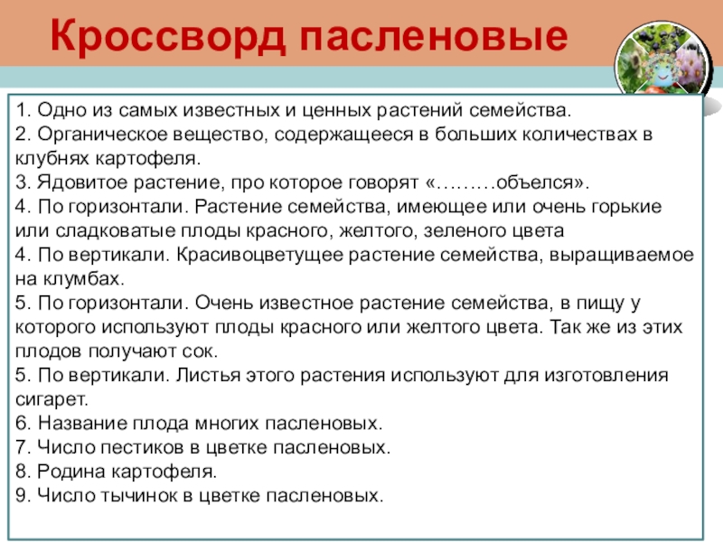 Семейство паслёновые