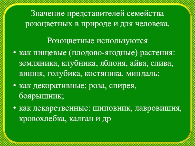 Слайд 16Значение представителей семейства розоцветных в природе и для человека.