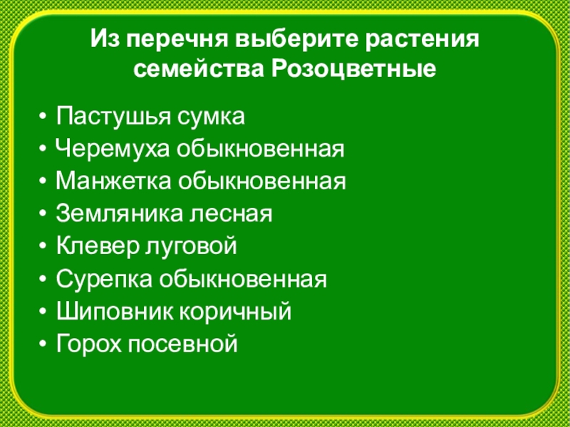 Слайд 25Из перечня выберите растения семейства Розоцветные