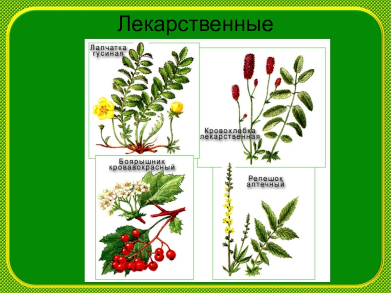 как лекарственные: шиповник, лавровишня, кровохлебка, калган и др