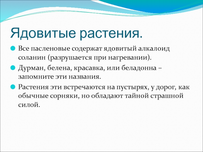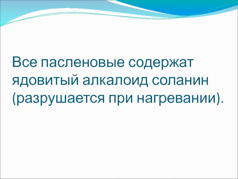 Все пасленовые содержат ядовитый алкалоид соланин (разрушается при нагревании).