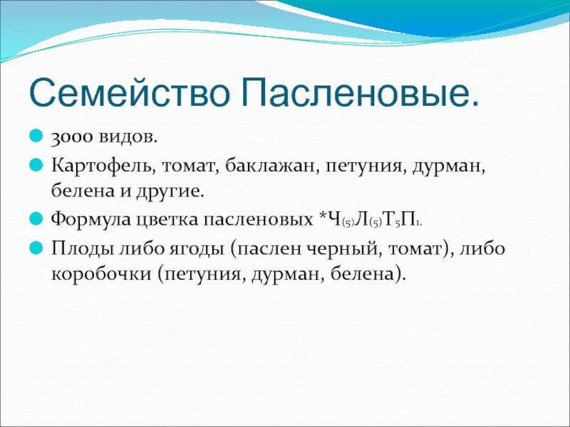 Слайд 2Семейство Пасленовые.