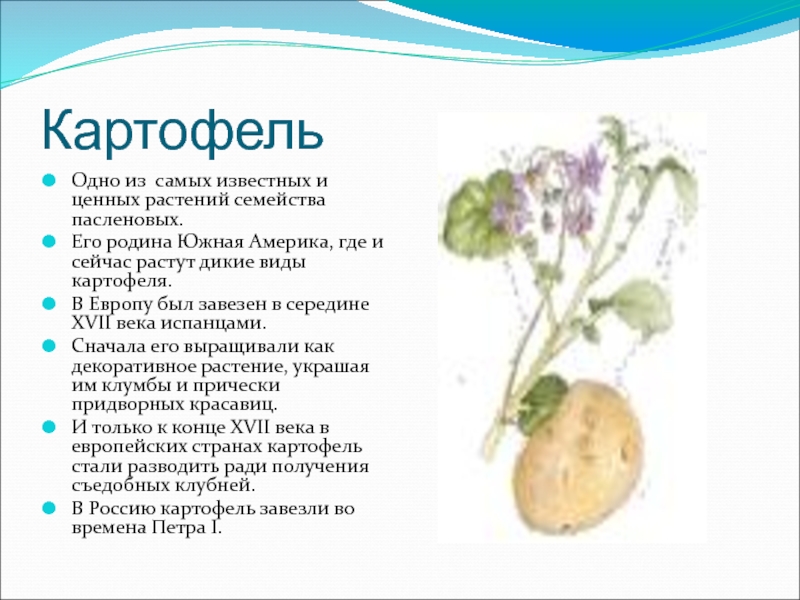 И только к конце XVII века в европейских странах картофель стали разводить ради получения съедобных клубней.