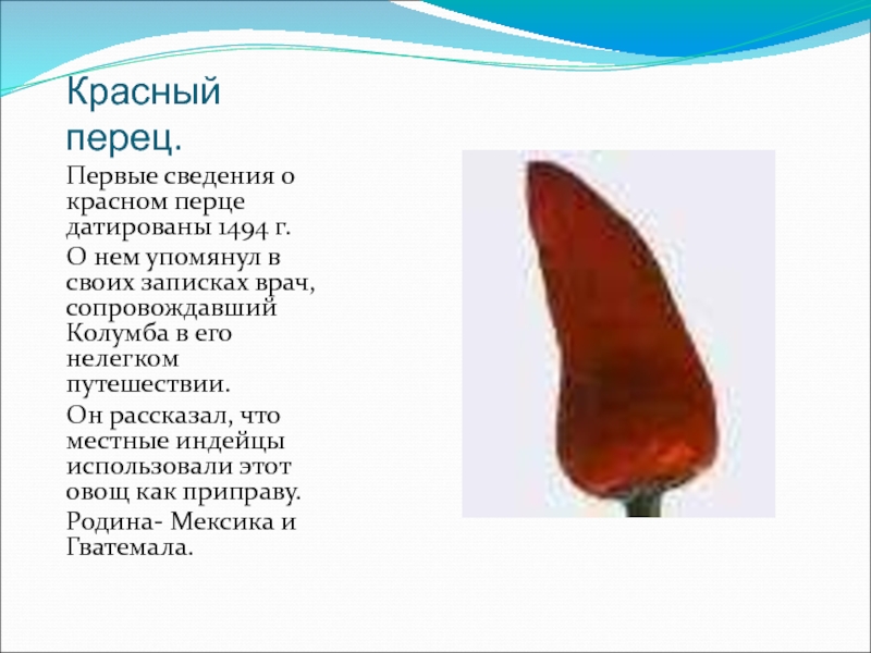 Первые сведения о красном перце датированы 1494 г.
