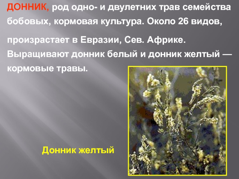 Слайд 16ДОННИК, род одно- и двулетних трав семейства бобовых, кормовая культура. Около