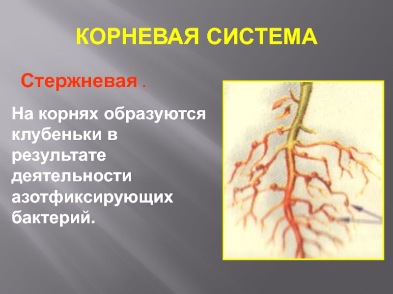 На корнях образуются клубеньки в результате деятельности азотфиксирующих бактерий.