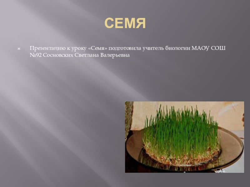 СЕМЯПрезентацию к уроку «Семя» подготовила учитель биологии МАОУ СОШ №92 Сосновских Светлана Валерьевна