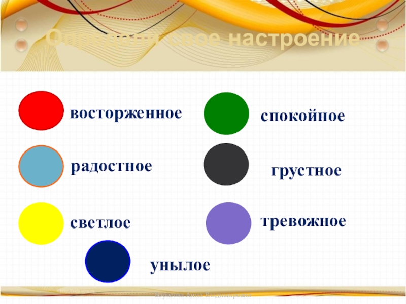 Определи свое настроениевосторженноерадостноесветлоегрустноеспокойноетревожноеунылоеБорисова Анна Владимировна