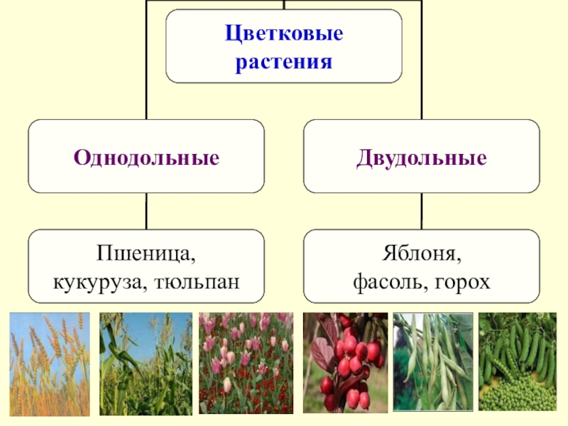 5.Растения, имеющие в зародыше семени две семядоли, называют двудольными – это фасоль, капуста, яблоня, горох и др.