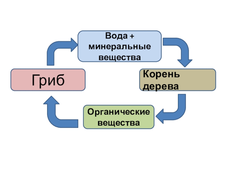 ГрибКорень дереваВода + минеральные веществаОрганические вещества