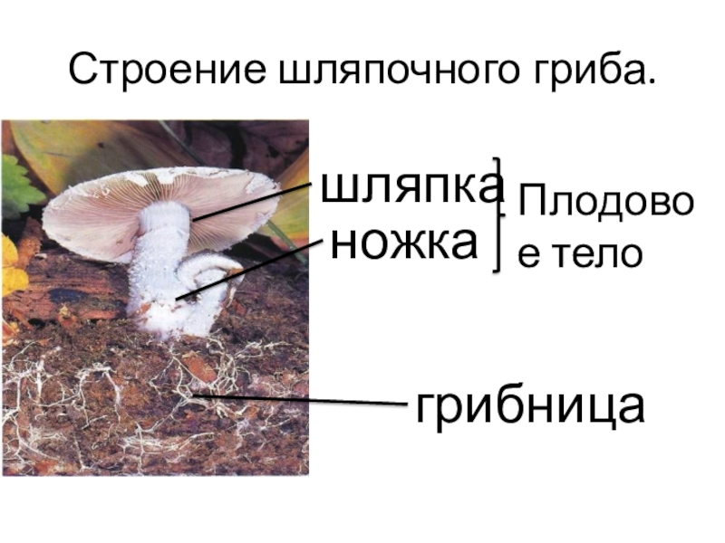 Строение шляпочного гриба.шляпканожкагрибницаПлодовое тело