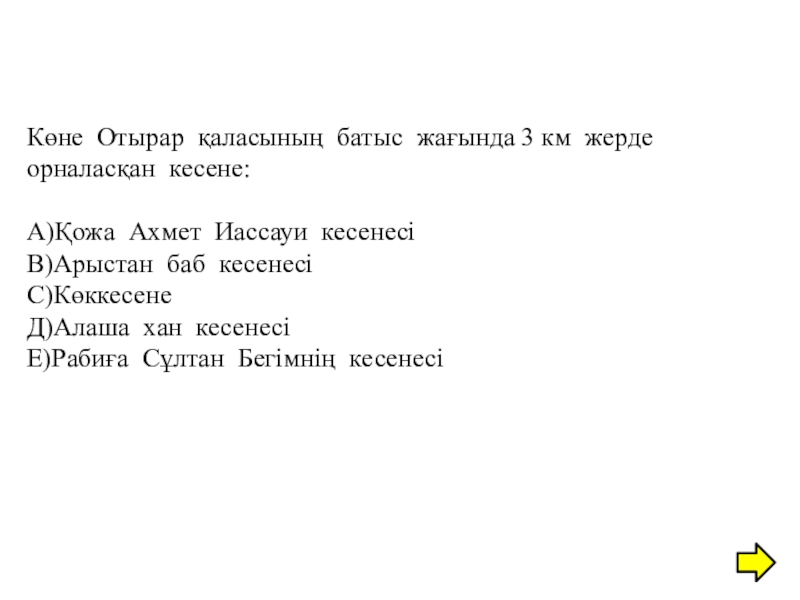 Слайд 24Көне Отырар қаласының батыс жағында 3 км жерде орналасқан кесене: