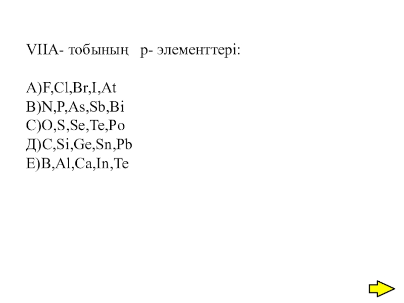 Слайд 16VIIA- тобының р- элементтері: