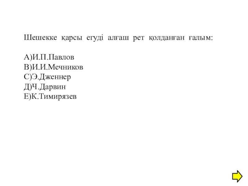 Слайд 34Шешекке қарсы егуді алғаш рет қолданған ғалым: