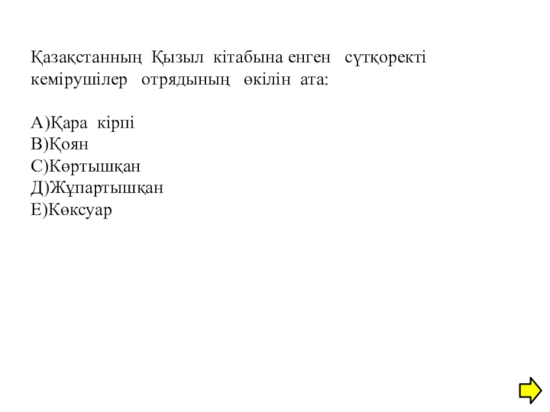 Слайд 26Қазақстанның Қызыл кітабына енген сүтқоректі кемірушілер отрядының өкілін