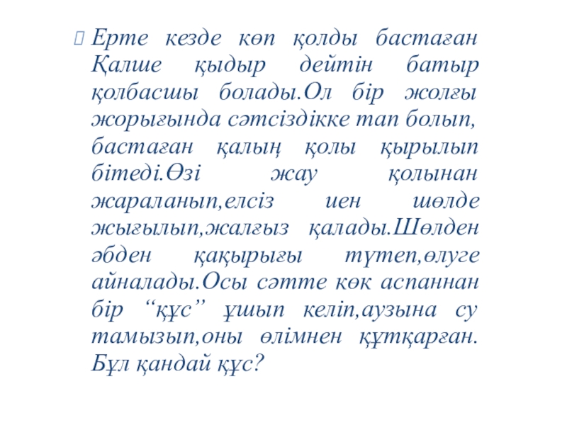 Слайд 38Ерте кезде көп қолды бастаған Қалше қыдыр дейтін батыр қолбасшы болады.Ол