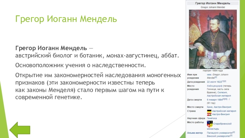 Грегор Иоганн Мендель — австрийский биолог и ботаник, монах-августинец, аббат.
