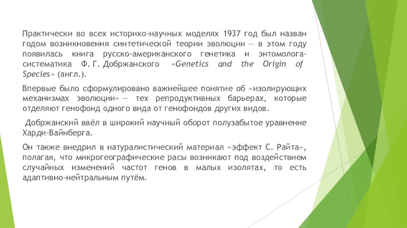 Добржанский ввёл в широкий научный оборот полузабытое уравнение Харди-Вайнберга.