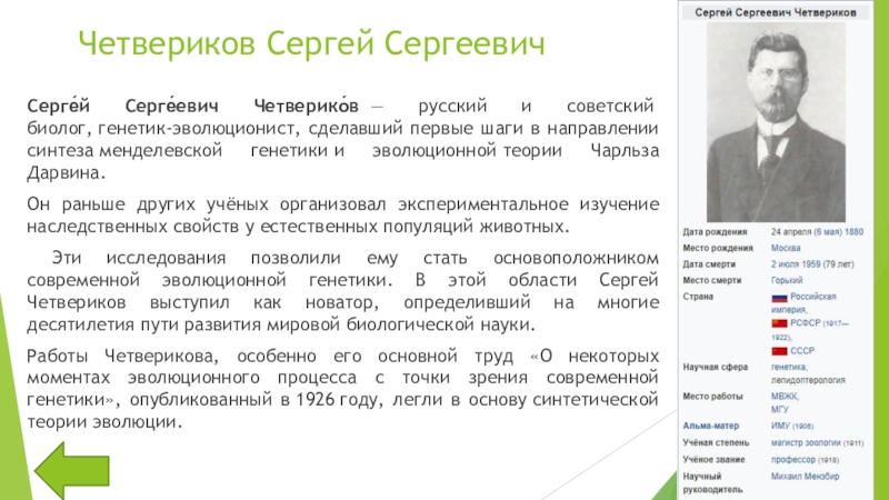 Серге́й Серге́евич Четверико́в — русский и советский биолог, генетик-эволюционист, сделавший первые