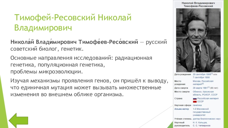Слайд 15Тимофей-Ресовский Николай Владимирович