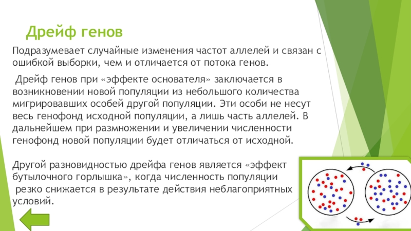 Подразумевает случайные изменения частот аллелей и связан с ошибкой выборки,