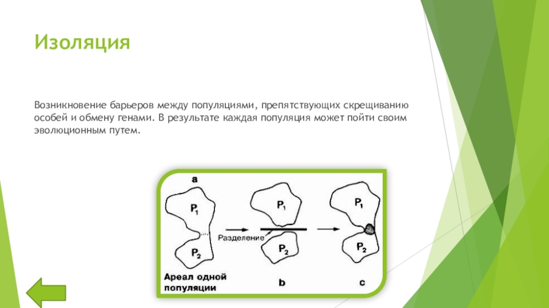 Возникновение барьеров между популяциями, препятствующих скрещиванию особей и обмену генами. В
